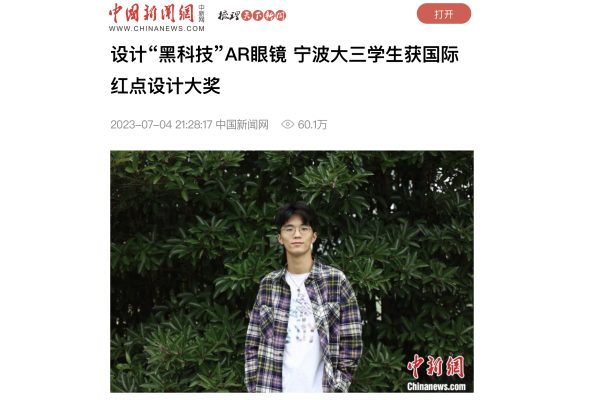 【中国新闻网】设计“黑科技”AR眼镜 宁波大三学生获国际红点设计大奖
