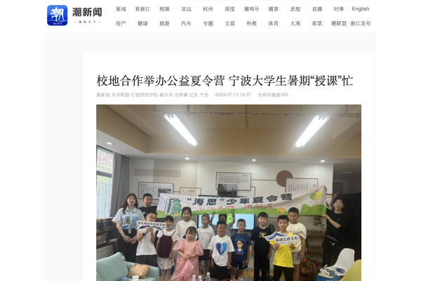 【潮新闻】校地合作举办公益夏令营 宁波大学生暑期“授课”忙