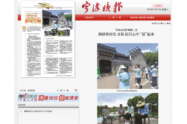 【宁波晚报】“乡村π计划”的第二天 调研的村庄 在队员们心中 “活”起来