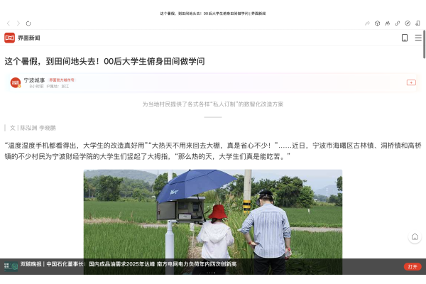 【界面新闻】这个暑假,到田间地头去!00后大学生俯身田间做学问
