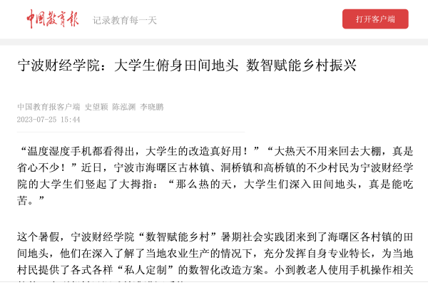 【中国教育报客户端】宁波财经学院:大学生俯身田间地头 数智赋能乡村振兴