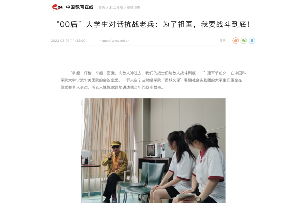 【中国教育在线】“00后”大学生对话抗战老兵:为了祖国,我要战斗到底!
