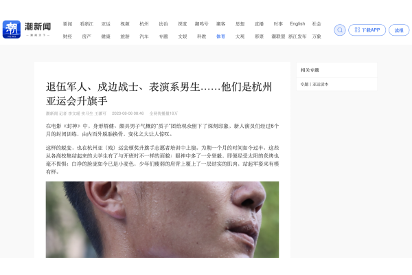 【潮新闻】退伍军人、戍边战士、表演系男生……他们是杭州亚运会升旗手