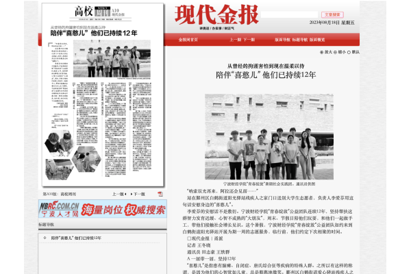 【现代金报】从曾经的拘谨害怕到现在温柔以待 陪伴“喜憨儿” 他们已持续12年