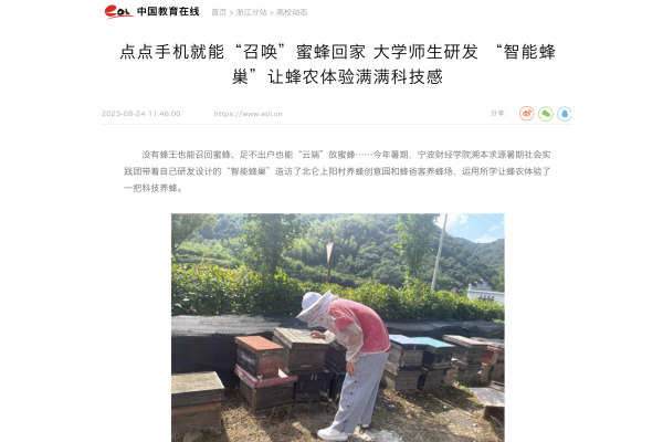 【中国教育在线】点点手机就能“召唤”蜜蜂回家 大学师生研发 “智能蜂巢”让蜂农体验满满科技感