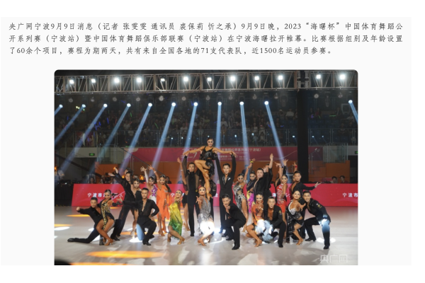 【央广网】“舞林高手”齐聚 2023中国体育舞蹈公开系列赛宁波站开幕