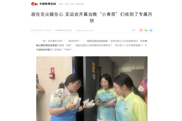 【中国教育在线】甜在舌尖暖在心 亚运会开幕当晚“小青荷”们收到了专属月饼