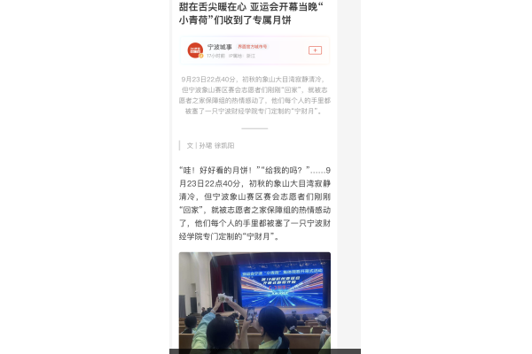 【界面新闻】甜在舌尖暖在心 亚运会开幕当晚“小青荷”们收到了专属月饼