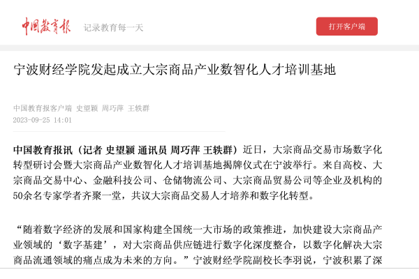 【中国教育报】宁波财经学院发起成立大宗商品产业数智化人才培训基地