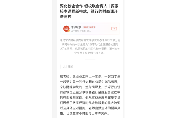 【界面新闻】深化校企合作 银校联合育人 | 探索校本课程新模式,银行的财商课开进高校