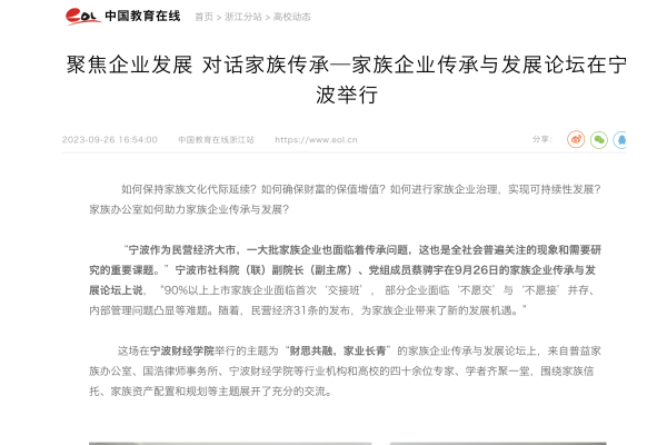 【中国教育在线】聚焦企业发展 对话家族传承—家族企业传承与发展论坛在宁波举行