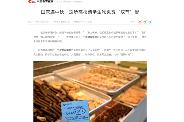 【中国教育在线】国庆连中秋,这所高校请学生吃免费“双节”餐