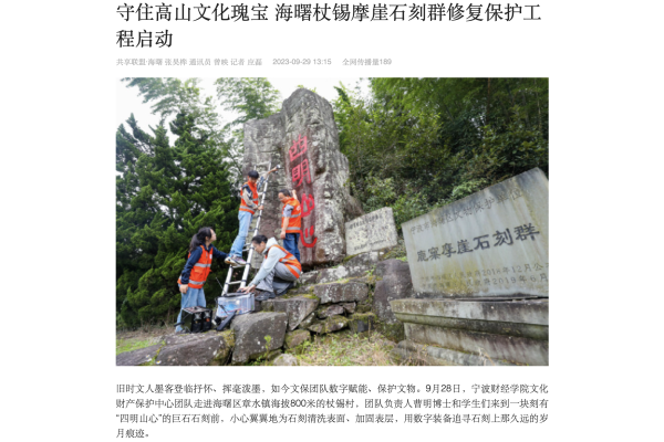 【潮新闻】守住高山文化瑰宝 海曙杖锡摩崖石刻群修复保护工程启动