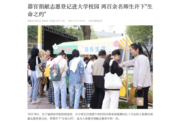 【潮新闻】器官捐献志愿登记进大学校园 两百余名师生许下“生命之约”