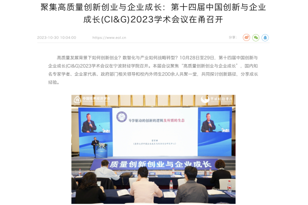 【中国教育在线】聚集高质量创新创业与企业成长:第十四届中国创新与企业成长(CI&G)2023学术会议在甬召开