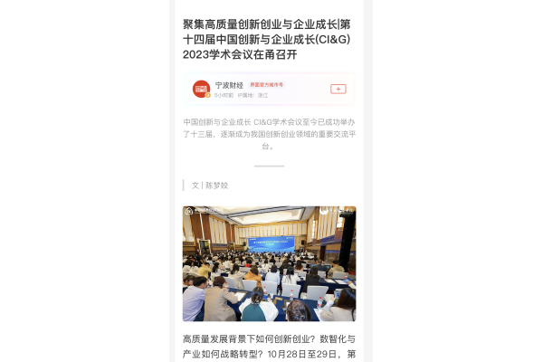 【界面新闻】聚集高质量创新创业与企业成长|第十四届中国创新与企业成长(CI&G)2023学术会议在甬召开