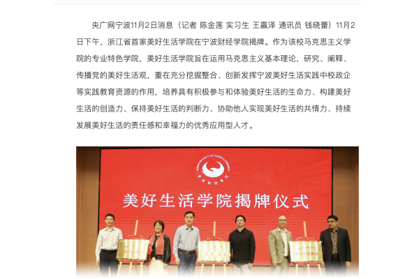 【央广网】浙江首家美好生活学院落户宁波财经学院