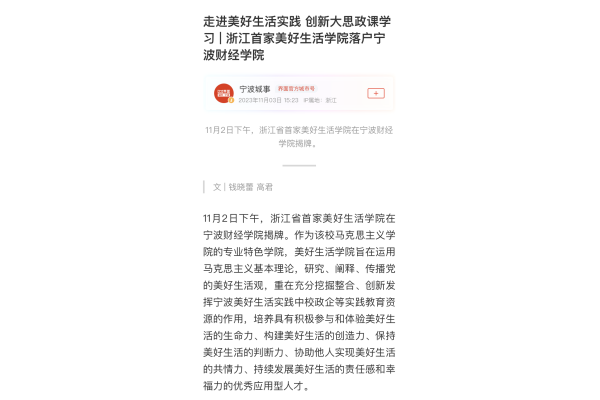 【界面新闻】走进美好生活实践 创新大思政课学习 | 浙江首家美好生活学院落户宁波财经学院