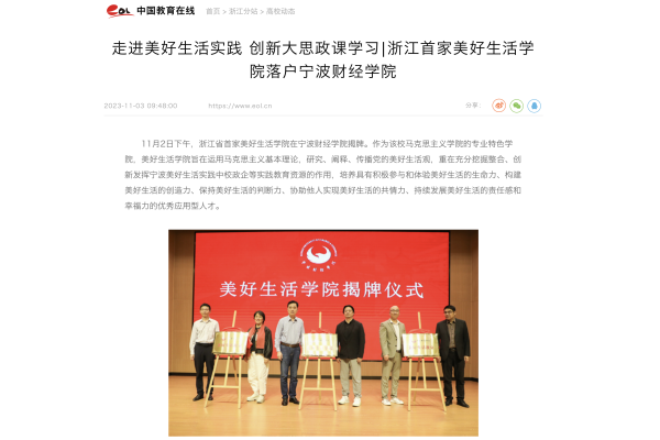 【中国教育在线】走进美好生活实践 创新大思政课学习|浙江首家美好生活学院落户宁波财经学院