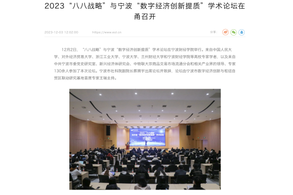 【中国教育在线】2023“八八战略”与宁波“数字经济创新提质”学术论坛在甬召开