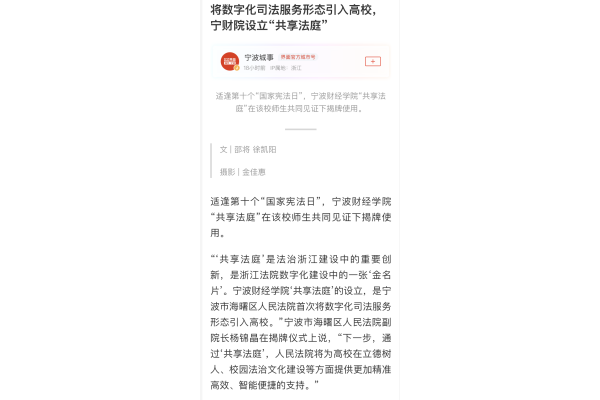 【界面新闻】将数字化司法服务形态引入高校,宁财院设立“共享法庭”