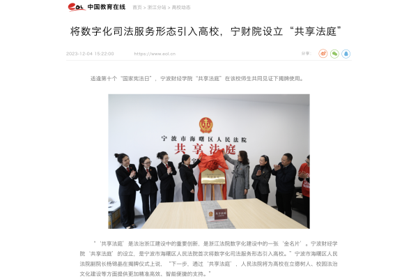 【中国教育在线】将数字化司法服务形态引入高校,宁财院设立“共享法庭”