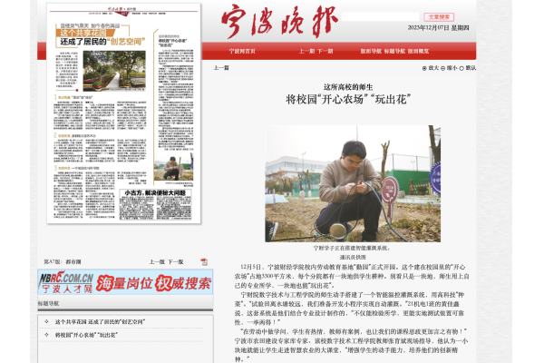 【宁波晚报】这所高校的师生 将校园“开心农场” “玩出花”