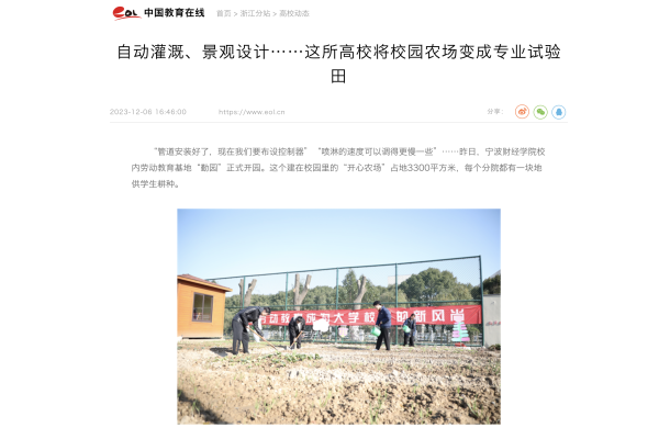 【中国教育在线】自动灌溉、景观设计……这所高校将校园农场变成专业试验田