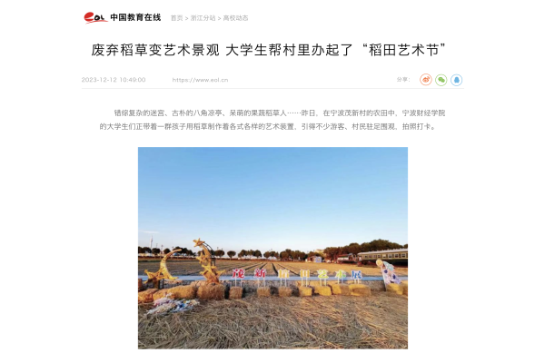 【中国教育在线】废弃稻草变艺术景观 大学生帮村里办起了“稻田艺术节”