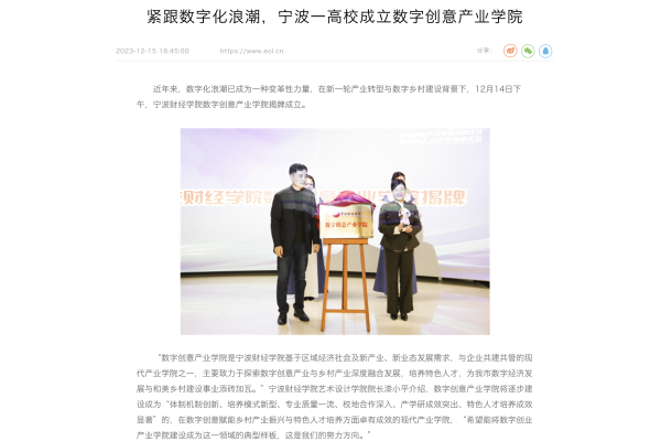 【中国教育在线】紧跟数字化浪潮,宁波一高校成立数字创意产业学院