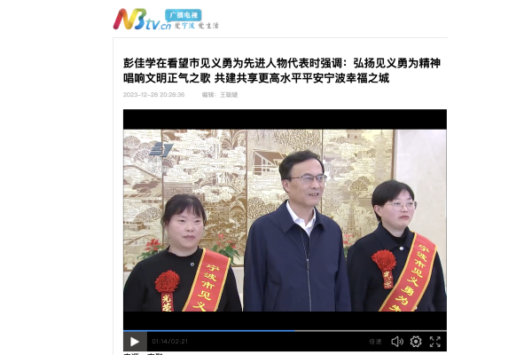 【广电网】彭佳学在看望市见义勇为先进人物代表时强调:弘扬见义勇为精神唱响文明正气之歌 共建共享更高水平平安宁波幸福之城