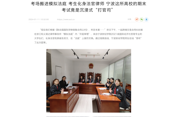 【中国教育在线】考场搬进模拟法庭 考生化身法官律师 宁波这所高校的期末考试竟是沉浸式“打官司”