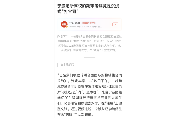 【界面新闻】宁波这所高校的期末考试竟是沉浸式“打官司”