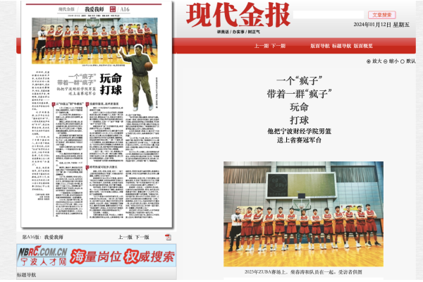 【现代金报】一个“疯子”带着一群“疯子” 玩命打球,他把宁波财经学院男篮送上省赛冠军台