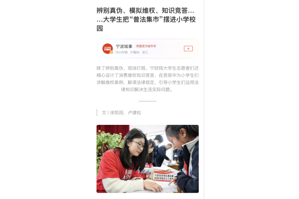【界面新闻】辨别真伪、模拟维权、知识竞答……大学生把“普法集市”摆进小学校园