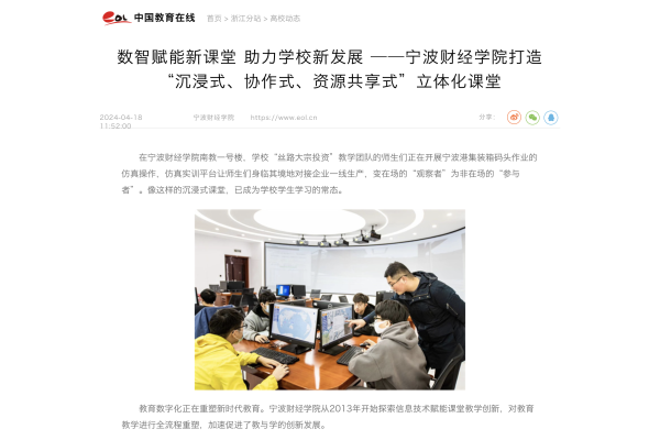 【中国教育在线】数智赋能新课堂 助力学校新发展 ——宁波财经学院打造“沉浸式、协作式、资源共享式”立体化课堂