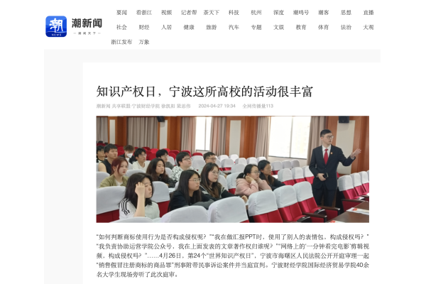 【潮新闻】知识产权日,宁波这所高校的活动很丰富