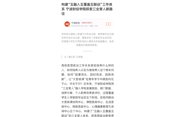 【界面新闻】构建“五融入五覆盖五联动”工作体系 宁波财经学院探索三全育人新路径