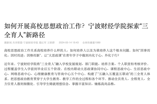 【潮新闻】如何开展高校思想政治工作?宁波财经学院探索“三全育人”新路径