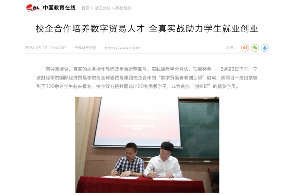 【中国教育在线】校企合作培养数字贸易人才 全真实战助力学生就业创业