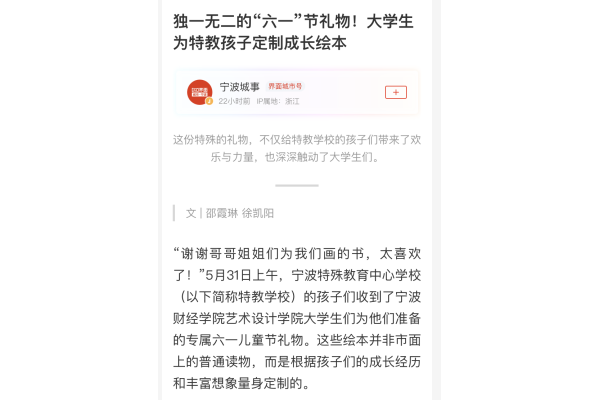 【界面新闻】独一无二的“六一”节礼物!大学生为特教孩子定制成长绘本