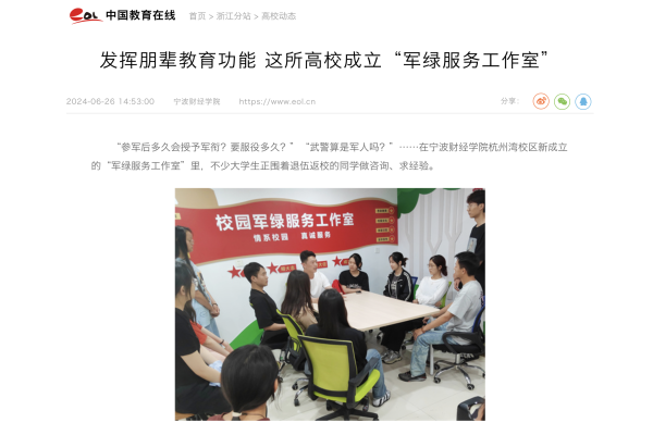 【中国教育在线】发挥朋辈教育功能 这所高校成立“军绿服务工作室”
