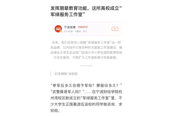【界面新闻】发挥朋辈教育功能,这所高校成立“军绿服务工作室”
