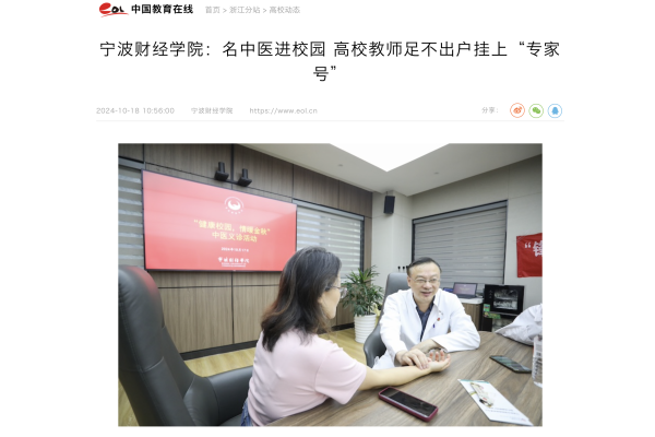 【中国教育在线】宁波财经学院:名中医进校园 高校教师足不出户挂上“专家号”