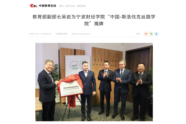 【中国教育在线】教育部副部长吴岩为宁波财经学院“中国-斯洛伐克丝路学院”揭牌