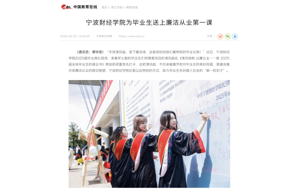 【中国教育在线】宁波财经学院为毕业生送上廉洁从业第一课