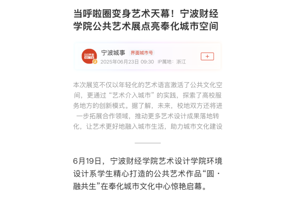 【界面新闻】当呼啦圈变身艺术天幕!宁波财经学院公共艺术展点亮奉化城市空间