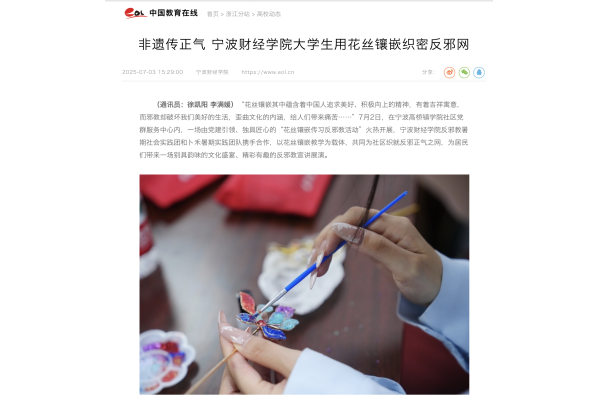 【中国教育在线】非遗传正气 宁波财经学院大学生用花丝镶嵌织密反邪网