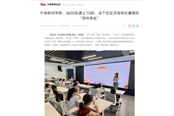 【中国教育在线】宁波财经学院:当00后遇上10后,这个社区开启快乐暑假的“双向奔赴”
