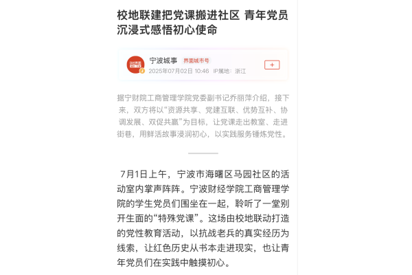 【界面新闻】校地联建把党课搬进社区 青年党员沉浸式感悟初心使命